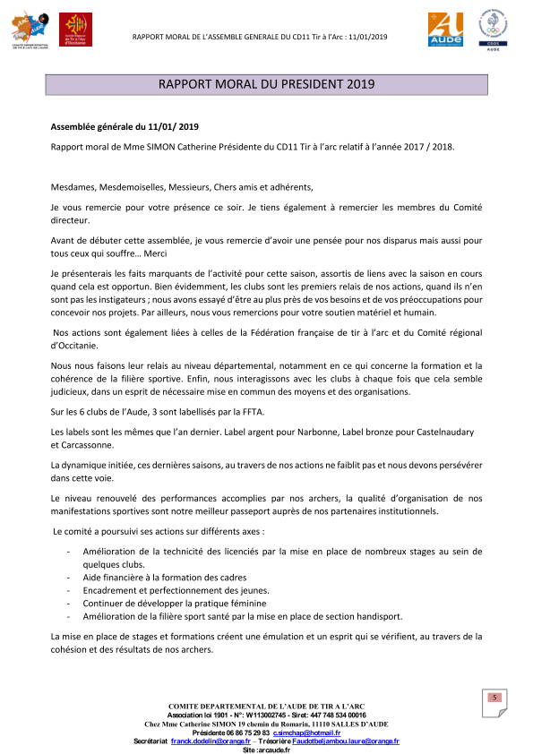 L'assemblée générale du comité départemental de l'Aude de Tir à l'Arc s'est tenue avec la présence d'environ 80 archers et leur famille.