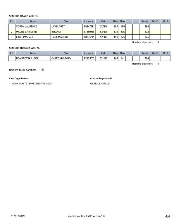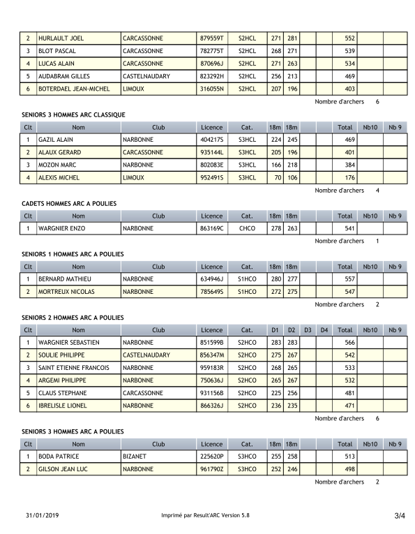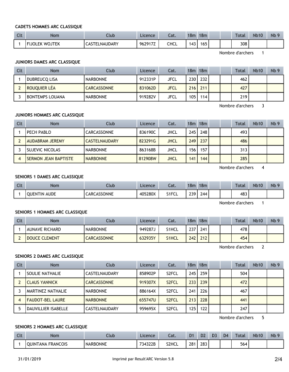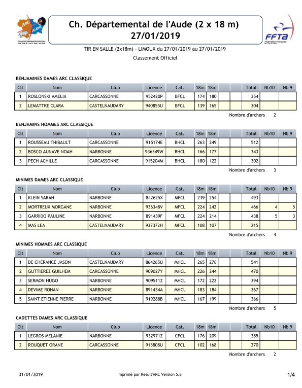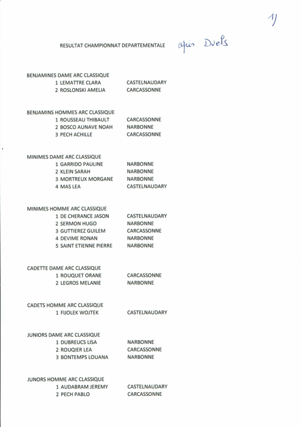 Résultats Championnat Départemental à Limoux 27 janvier 2019 2019 Départemental salle 2019 Départemental salle Duel voir la vidéo de TV NOISETIERS 11